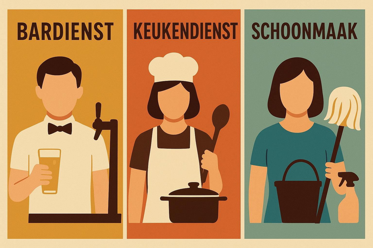 diensten (bardiensten en keukendiensten) zijn gepland en of er nog openstaande diensten