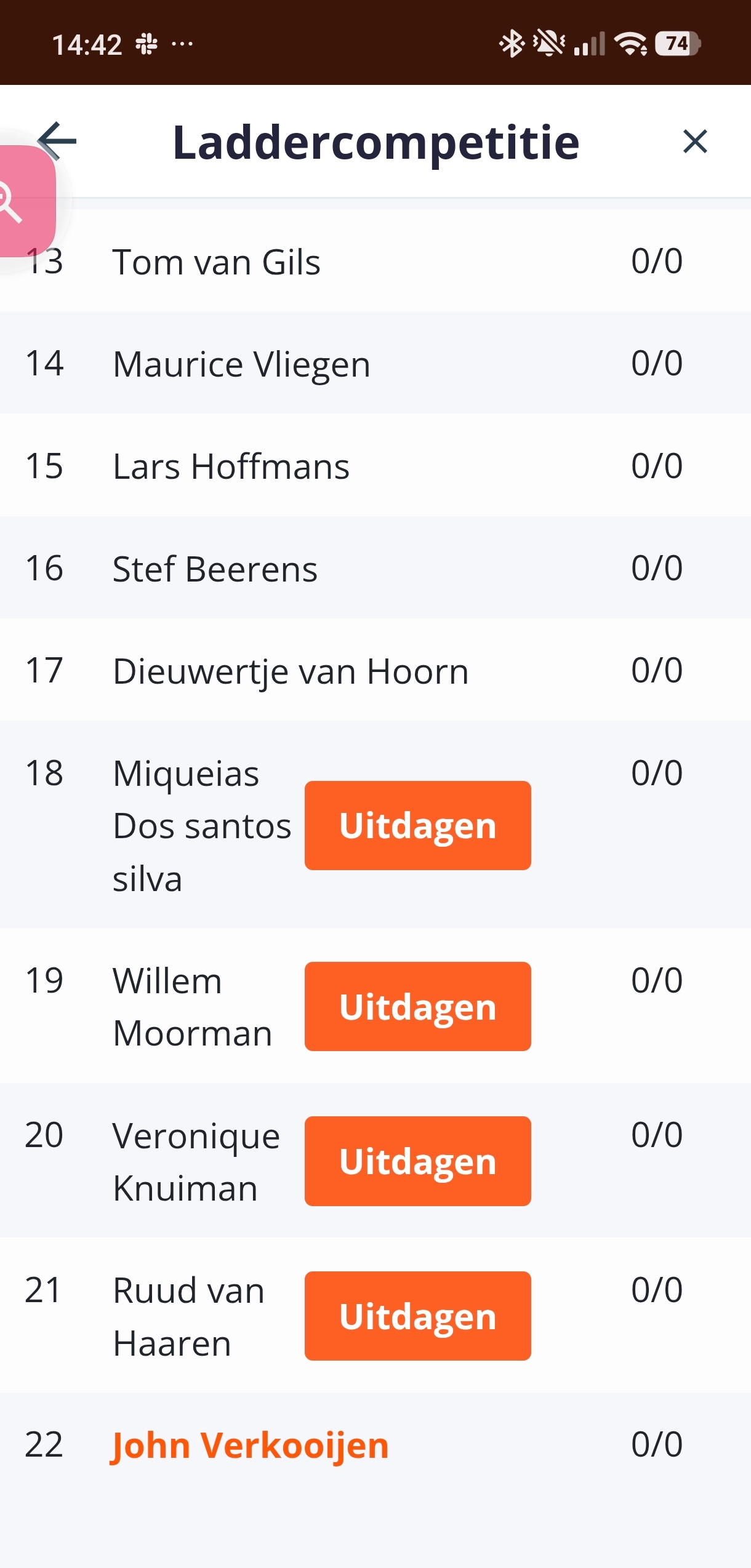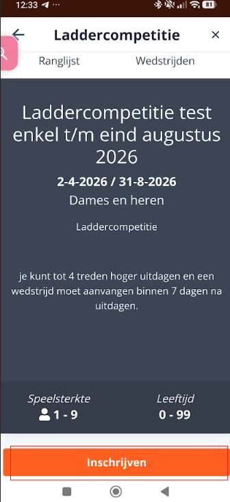 Deze ladder loopt vooralsnog tot eind augustus. Je kunt als je op de ladder staat tot maximaal 4 hoger uitdagen.