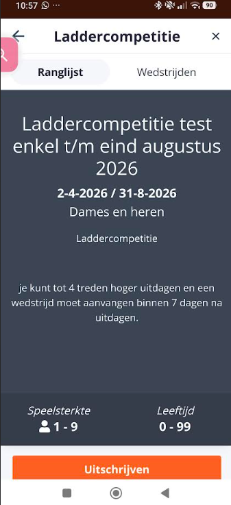 Per heden is er een nieuwe opzet van de tennisladder, we gaan als test de ladder van de knltb-app gebruiken.