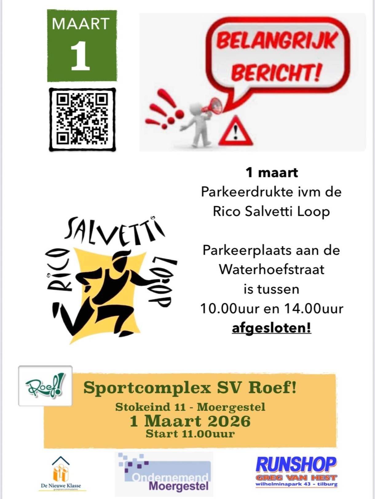 parkeerplaats aan de Waterhoefstraat is tussen 10.00 en 14.00 uur afgesloten